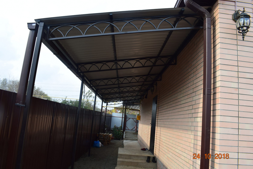 Навесы во дворе из профнастила пример 1 в Дрeзнe