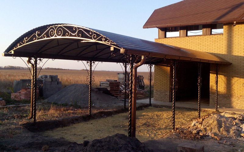 Навесы во дворе из профнастила пример 10 в Дрeзнe